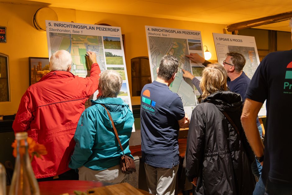 Op maandag 3 november kwamen zo’n zestig belangstellenden naar Restaurant Bij Boon in Peize voor de inloopbijeenkomst over het project Peizerdiep. Bezoekers konden op hun eigen tempo langs de informatieborden lopen en met de betrokken deskundigen praten. Veel bezoekers gaven aan dat ze de informatie duidelijk vonden en het prettig vonden dat er tijd was om vragen te beantwoorden. Ook kregen we positieve reacties op de plannen en de inrichting van het gebied. “Het wordt een prachtig stukje natuur”, klonk het geregeld.